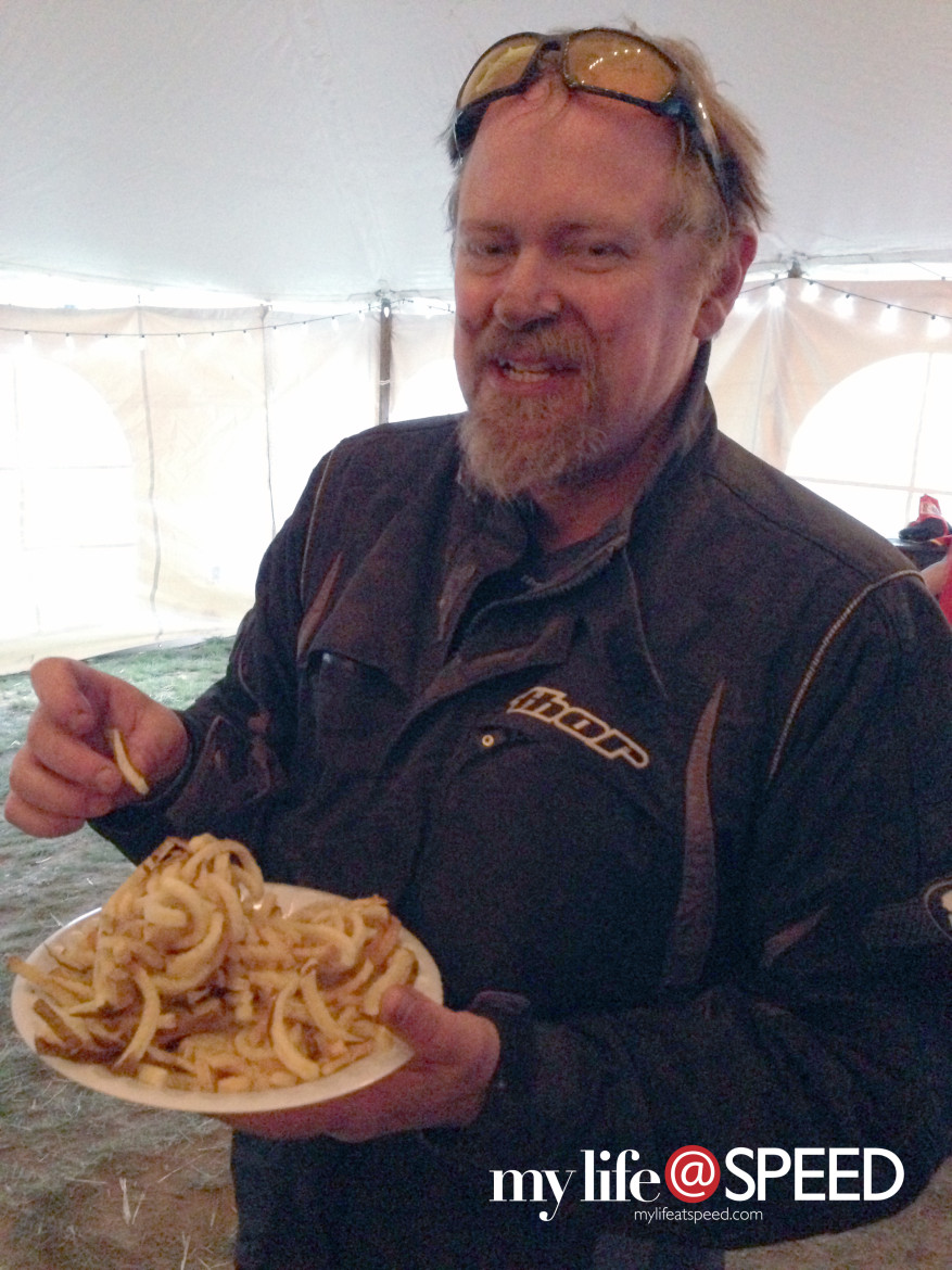 Of course, in Desert 100 fashion, exploration quickly led us to the beer garden and hunger led us to the food court – which led to the BEST curley fries, perfectly paired with a beer from Odessa local brewery, Rocky Coulee Brewing Company. Even the way the fries were prepared was awesome!! Here is the little girl with a HUGE drill equipped with a specialty bit made to make, you guessed it – curley fries. The foodie in me was happy and my thirst quenched. Ahhh…life doesn’t get much better!!