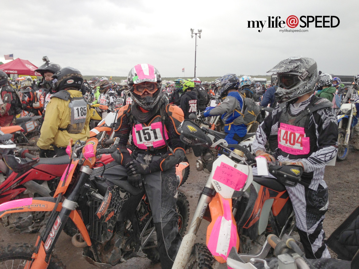 He said, “well I have always raced in the main event, but took my girls on the poker run yesterday. I did a stupid maneuver, tipped over at low speed and broke my collar bone.” His girls continued to tell me what a great time they had as they grinned from ear to ear. They told me they come every year to race the poker run with their dad. The girls ran off giggling as they waited for the start, of course with motorcycle helmets on, as a statement to everyone that they are racers too.