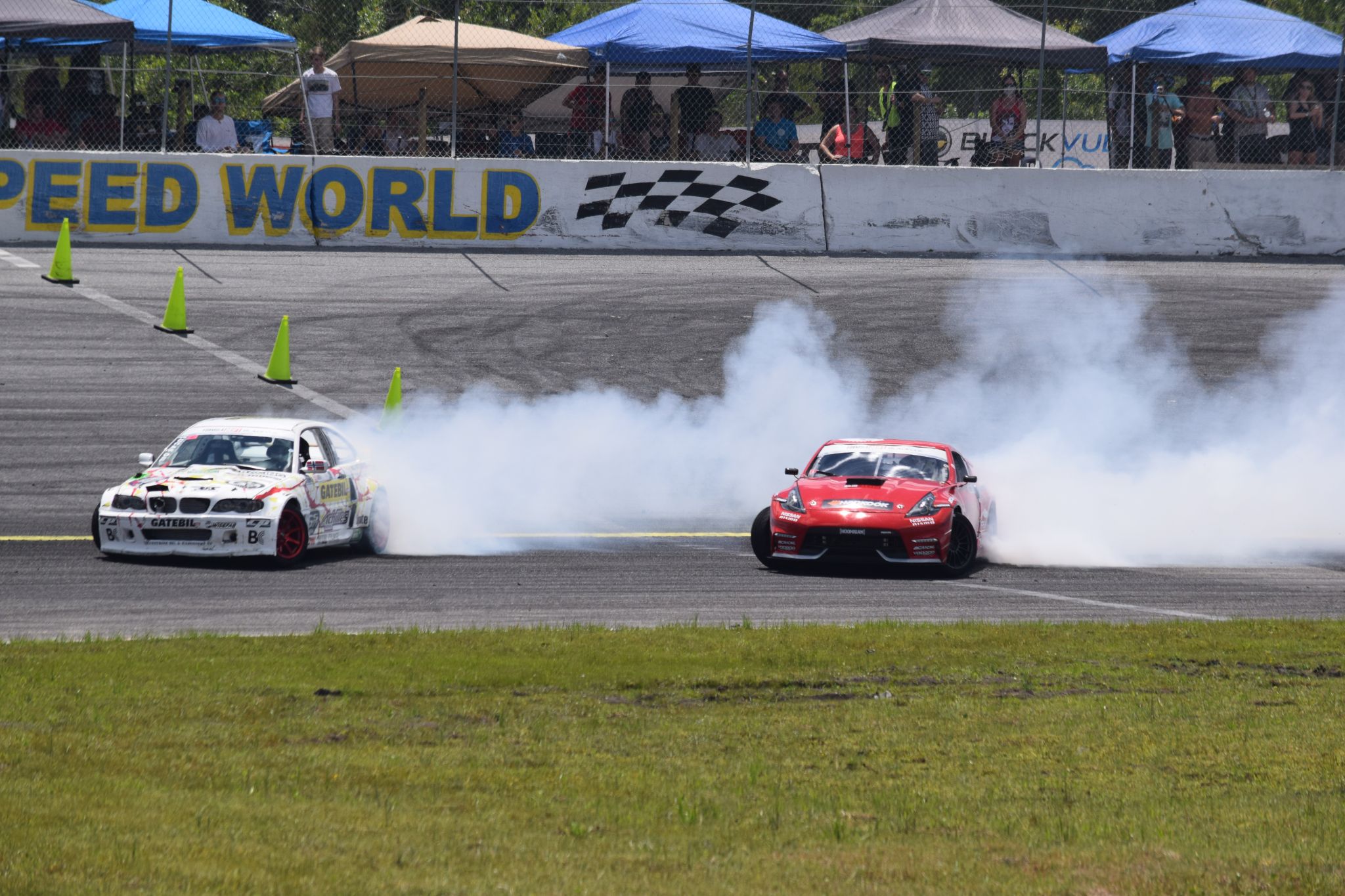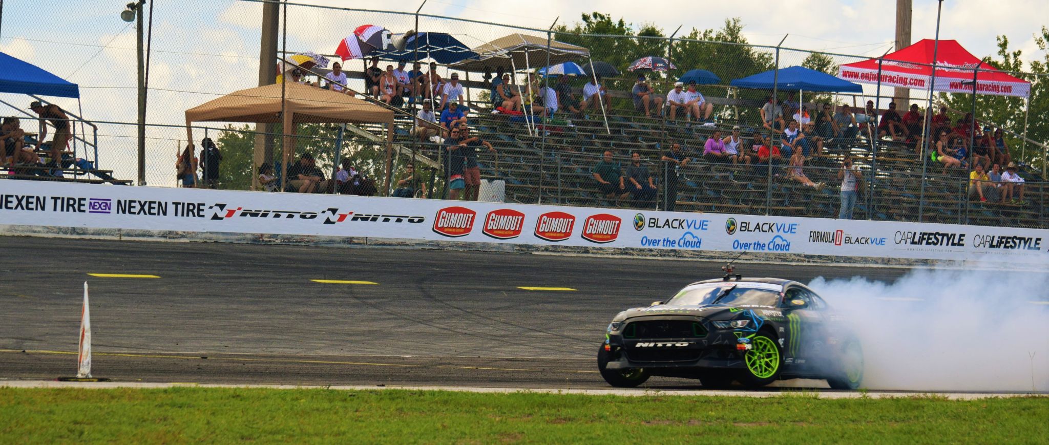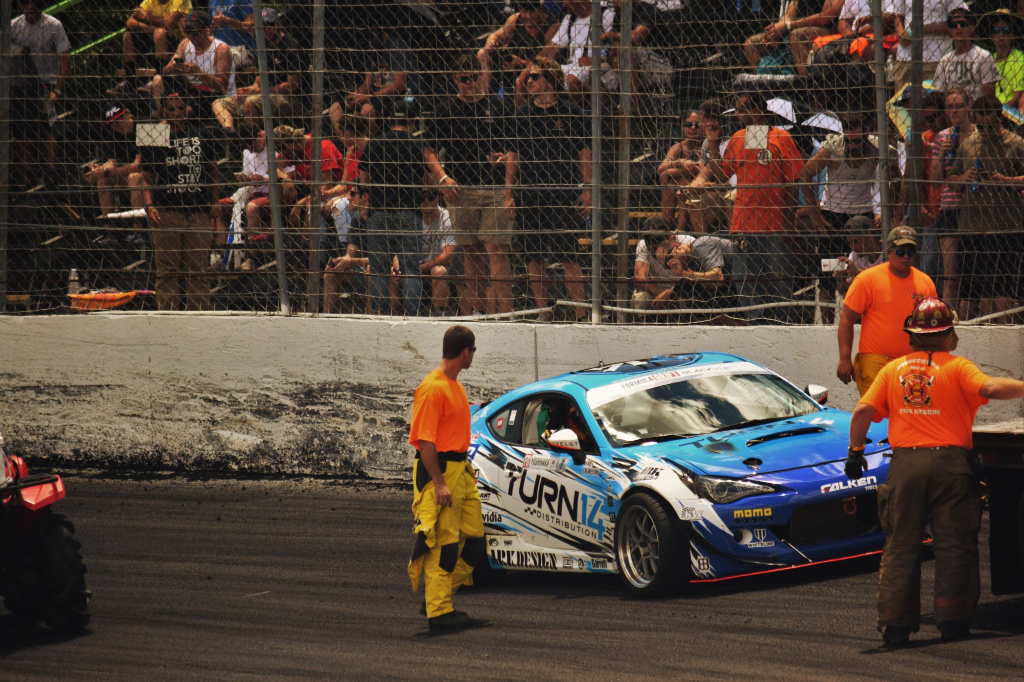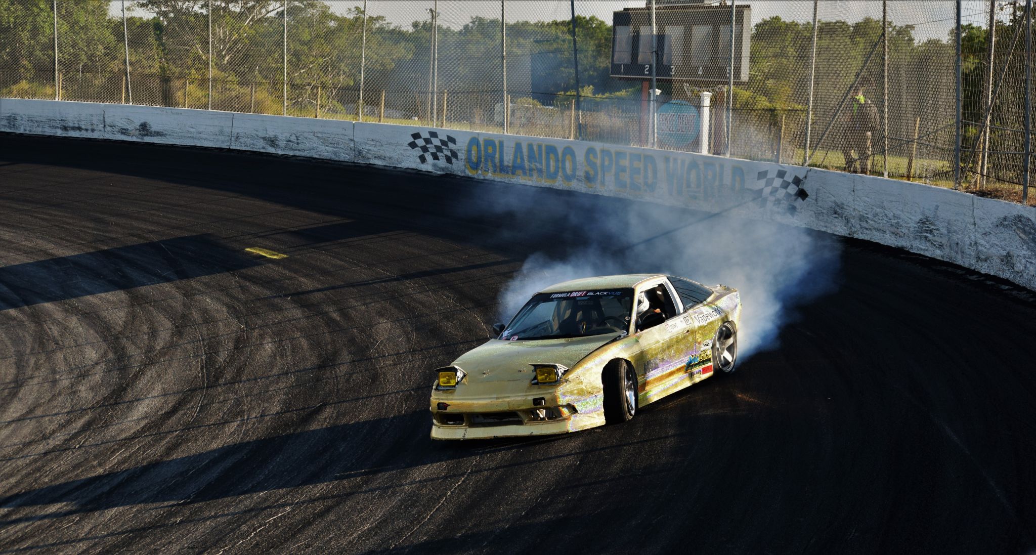 As much as I love endurance/sportscar racing and the soap opera of Formula 1, neither of those series have the flair and excitement that Formula D delivers on a regular basis, and Round 3 “Uncharted Territory” at Orlando Speedworld was no different. Walled banks, tough pavement transitions (the “bump”), and near 100 degree heat made the drivers work, the teams think, and punished already at-risk tires all weekend.