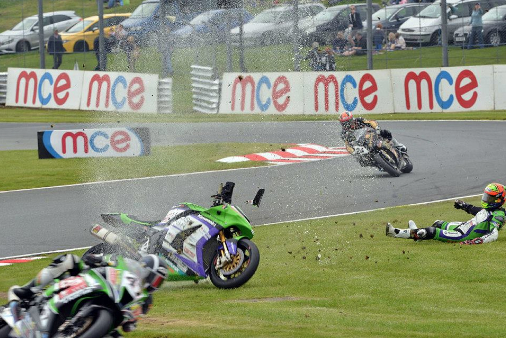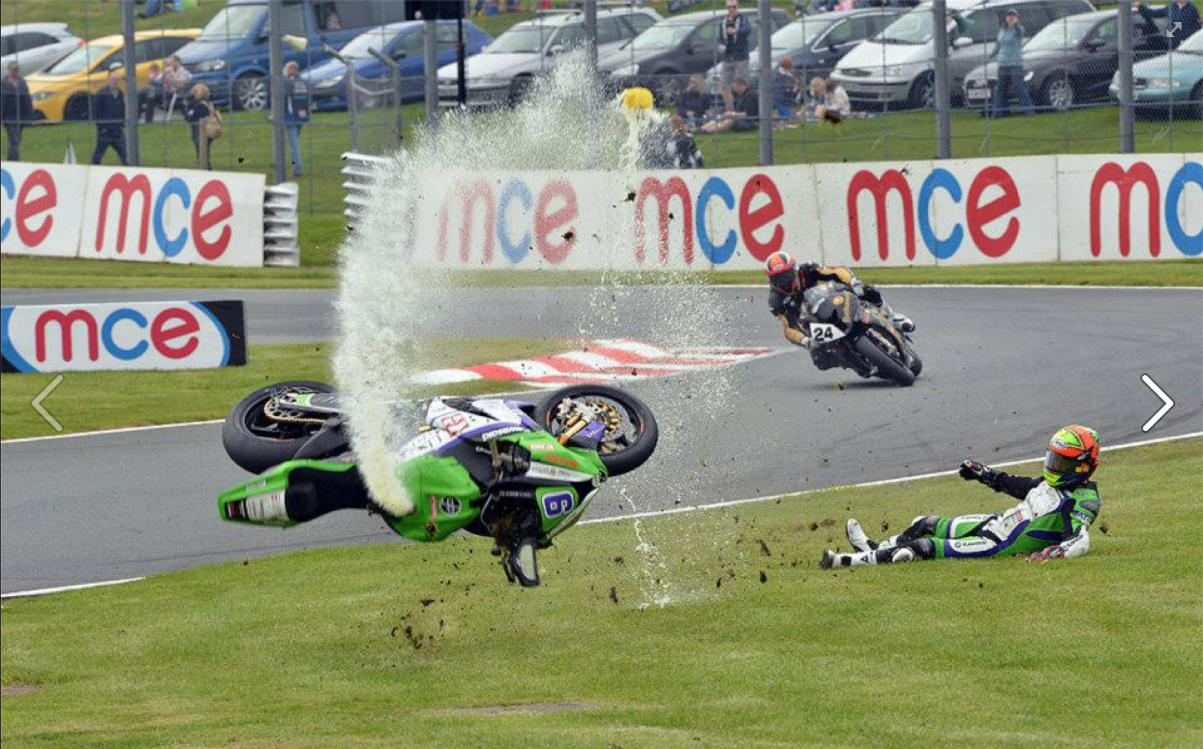 Lloyds British GBmoto Kawasaki’s Chris Walker was fine after this fireball in the third free practice session for the second round of the MCE British Superbike Championship this weekend at Oulton Park.