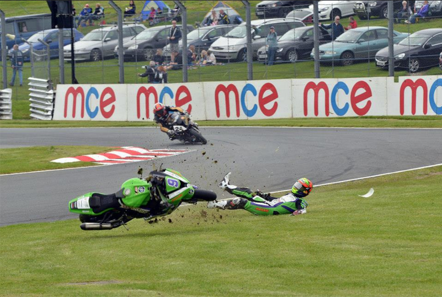 Lloyds British GBmoto Kawasaki’s Chris Walker was fine after this fireball in the third free practice session for the second round of the MCE British Superbike Championship this weekend at Oulton Park.