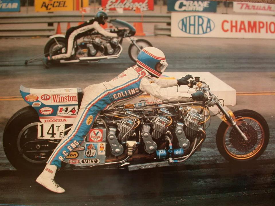Collins made scores of fans and earned the admiration of his fellow racers with a series of twin- and even triple-engine motorcycles that Collins rode. He was the first motorcyclist to break the seven-second barrier and a run he made in 1977 set a record that would stand for 11 years.